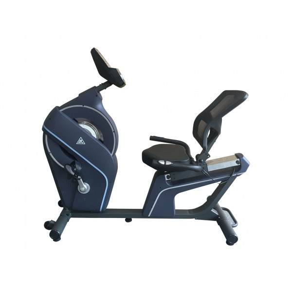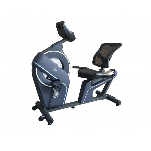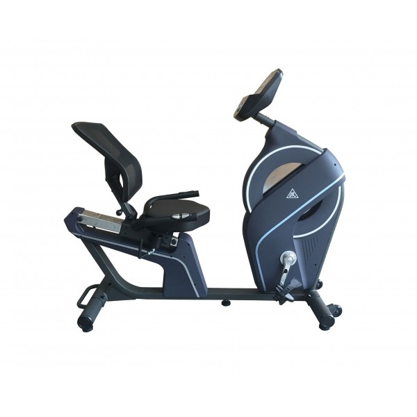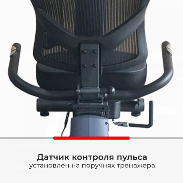 Электронная настройка позволяет плавно менять нагрузку, а сама система сопротивления отличается бесшумностью. Комфортное кресло с вентилируемой спинкой можно менять по горизонтали. Частоту пульса можно проверить, коснувшись датчиков на поручнях. Педали тренажера имеют противоскользящую поверхность и надежные ремни с регулировкой.