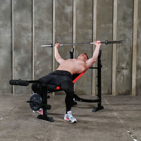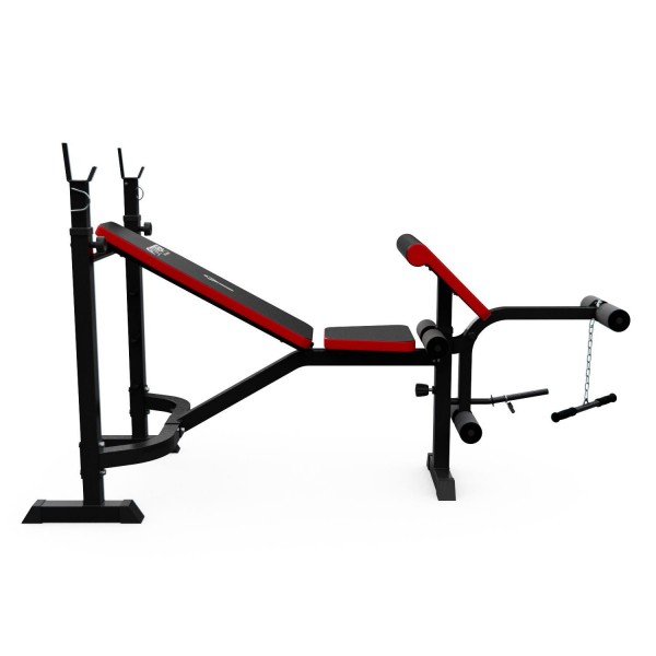 DFC Fytter BEW04R - силовая скамья со стойками для упражнений со штангой, партой Скотта и тягой. Модель выдерживает вес до 180 кг, нагрузка на стойки - до 100 кг.
