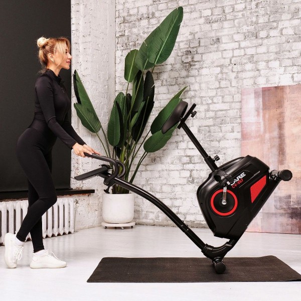 Конструкция изделия основана на электромагнитной нагрузке, создаваемой с помощью маховика с реальным весом 4 кг (7 кг инерционный вес). Спортсмен может задать 16 уровней сопротивления. Есть возможность настройки седла сразу в двух плоскостях - 7 вариантов высоты (73-90 см) и 2 варианта в горизонтальной плоскости. Предусмотрена проверка пульса на поручнях руля.