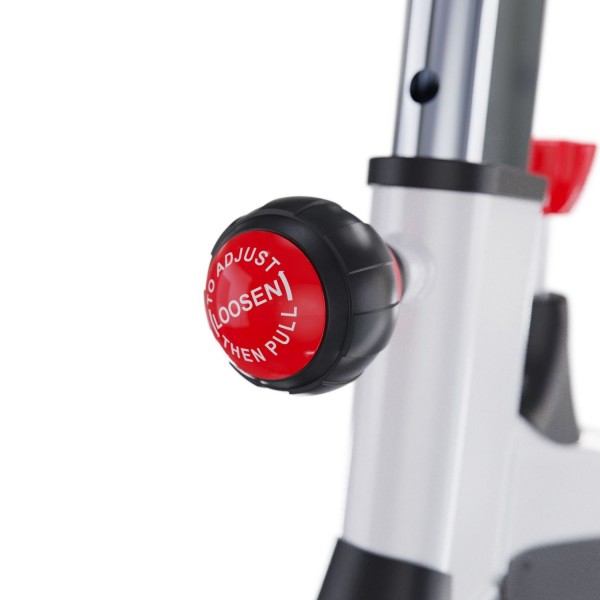 В тренажере работает маховик весом 10 кг (инерционный 19 кг). Седло имеет большое сидение особой конструкции для обеспечения полного комфорта во время длительных тренировок. Настраивается не только высота седла, но и его положение по горизонтали и угол наклона. Также есть 6 уровней высоты руля.