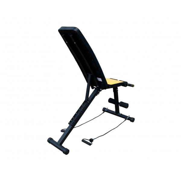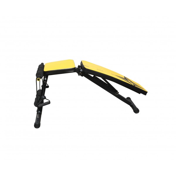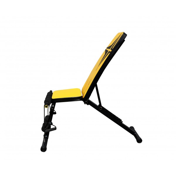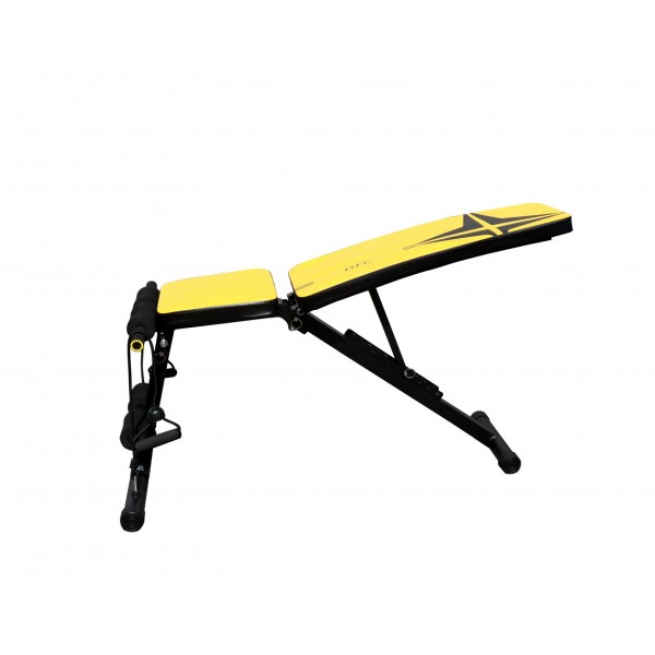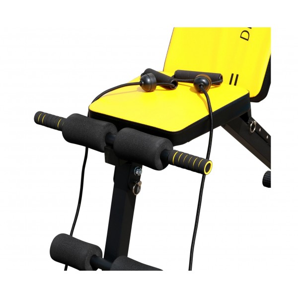 DFC D008Y – современная скамья с ярко-желтой поверхностью с двумя эспандерами.