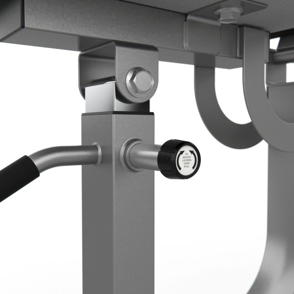 Конструкция тренажера с узким расположением передних ног обеспечивает более комфортное выполнение жима гантелей. Скамья предусматривает: