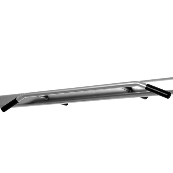 Модель выполнена из надежного стального профиля и поставляется с турником для широкого хвата.