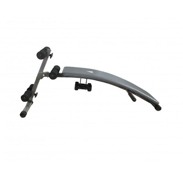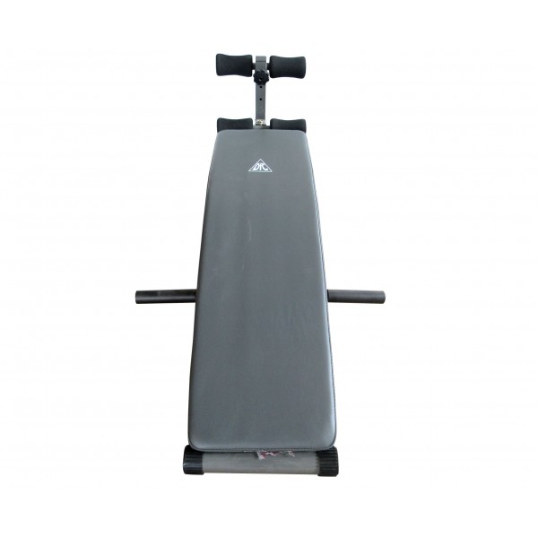Основу тренажера составляет стальная рама, а поверхность самой скамьи обита винилом. Гантели можно закрепить. Тренажер предлагает: