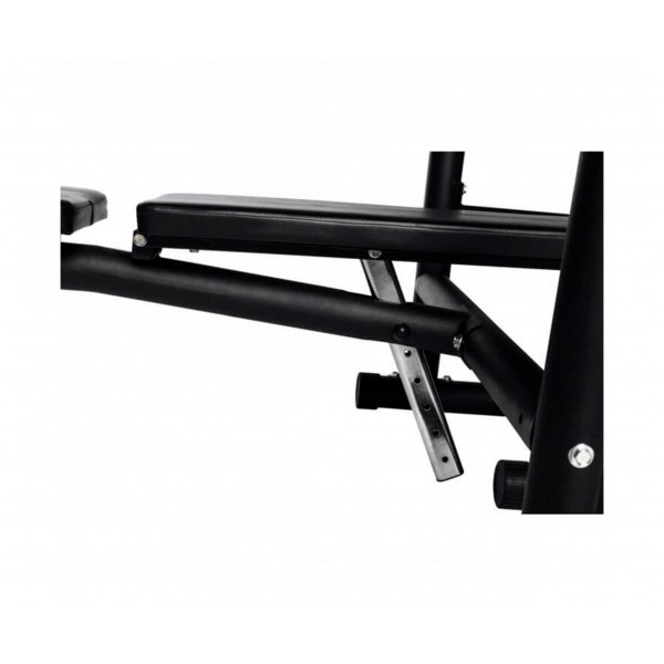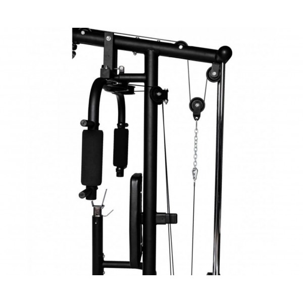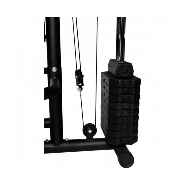 Конструкция основана на надежном стальном профиле толщиной 1,5 мм, а за счет роликов с подшипниками достигается плавное перемещение блоков. Скамья имеет стойки для упражнений со штангой, а также парту для бицепса и жим ногами. Предусмотрена настройка высоты стоек, есть изменение наклона спинки (6 вариантов). Установлены комфортные валики.