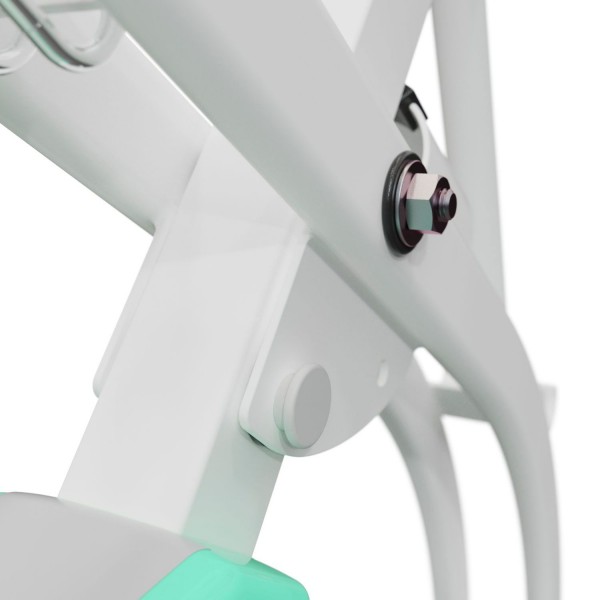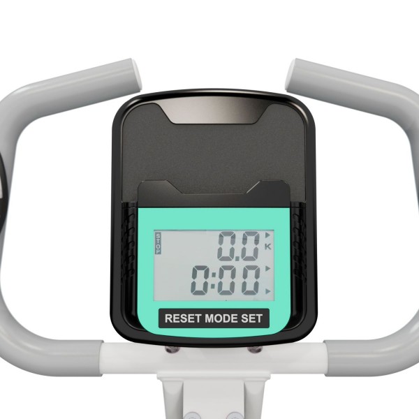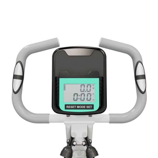 Для создания сопротивления при тренировке используется маховик с инерционным весом 3 кг. Есть возможность задать 8 уровней нагрузки. Удобное сидение имеет дополнительный держатель для полотенца. Проверка пульса встроена на руле.