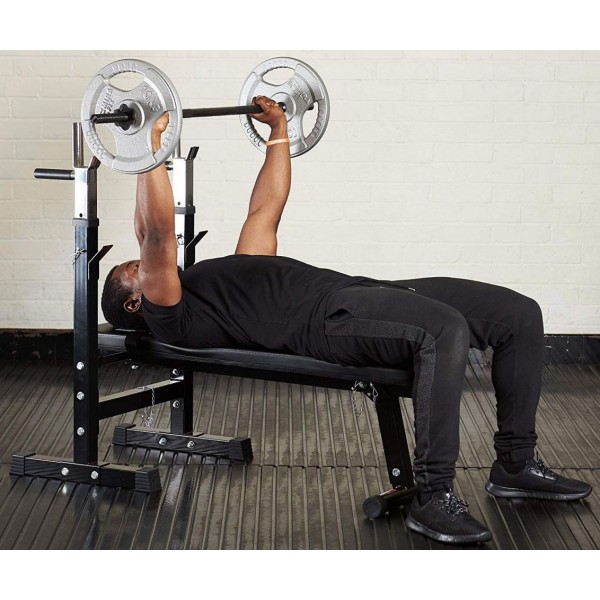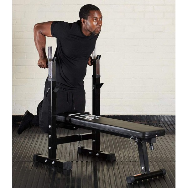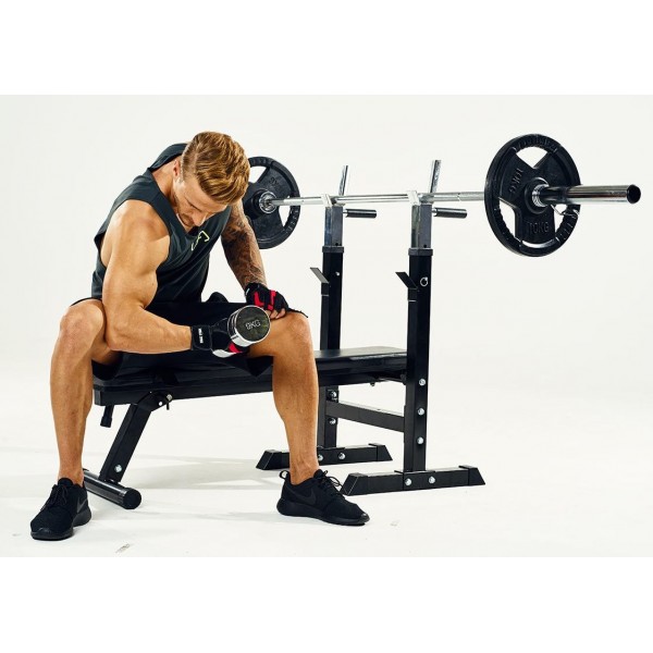 DFC DBCH2W – надежная скамья для выполнения тренировки со штангой и гантелями, а также отжимания на брусьях. Тренажер рассчитан на домашнее использование с нагрузкой до 200 кг. Цвет рамы - черный.