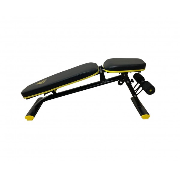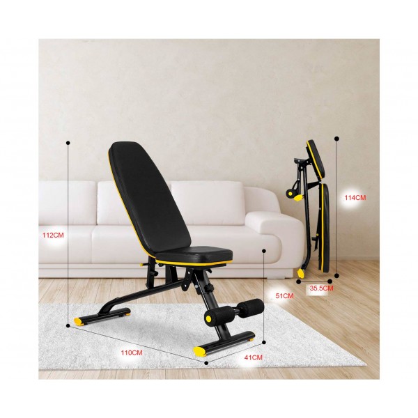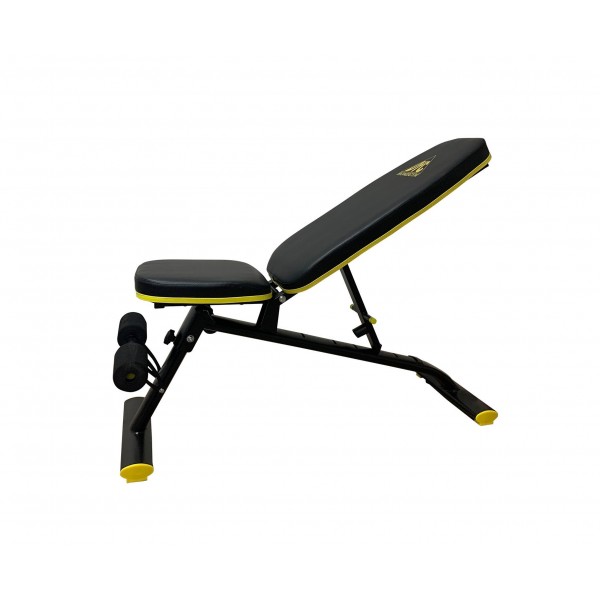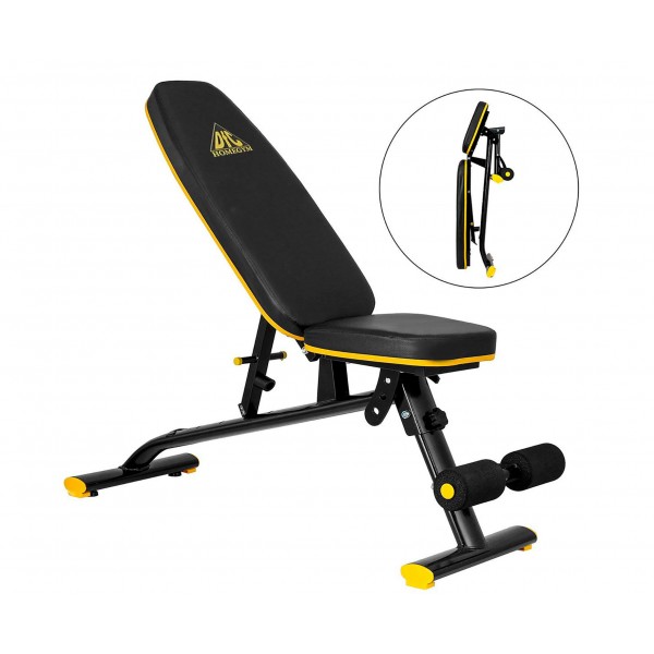 DFC DCH319 – современная скамья с регулировкой наклона и контрастной отделкой желтым цветом. Складная модель для дома.