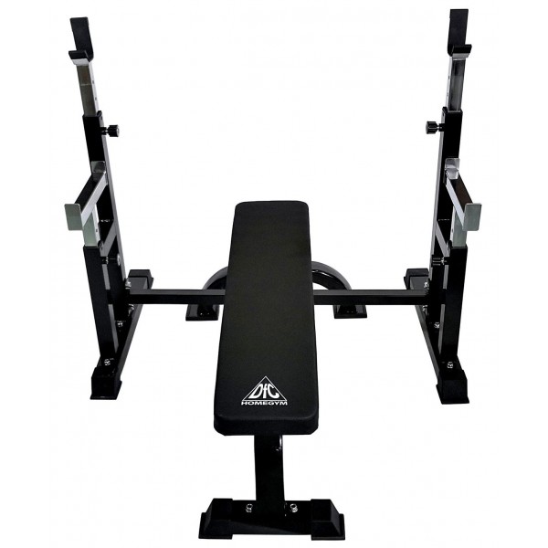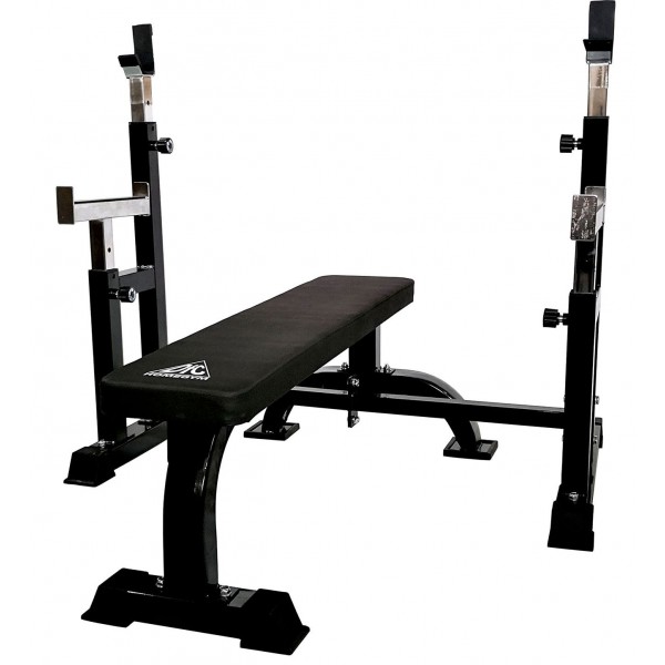DFC DZ005FB – комплект из прямой скамьи и стоек для домашнего использования. Модель окрашена в черный цвет.