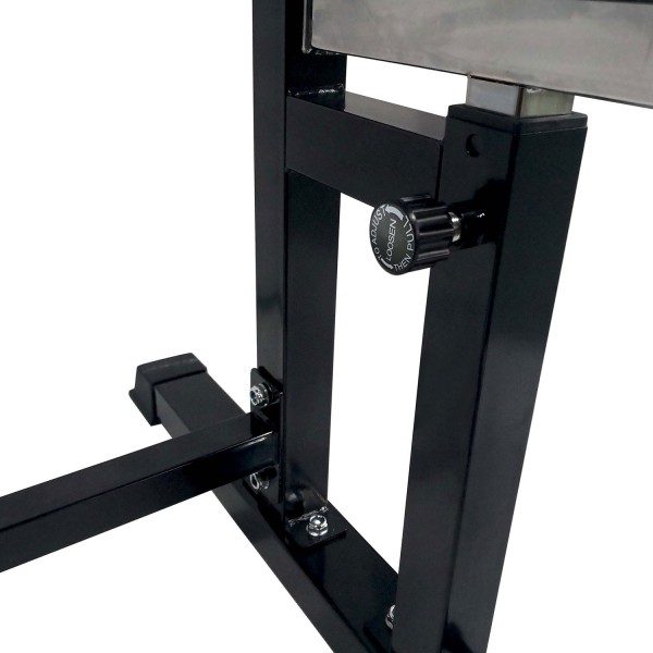 Стойки могут быть установлены с интервалом 70 или 123 см. Для изготовления конструкции использован прочный стальной профиль 1,5 мм. Для комфорта занятий предусмотрены: