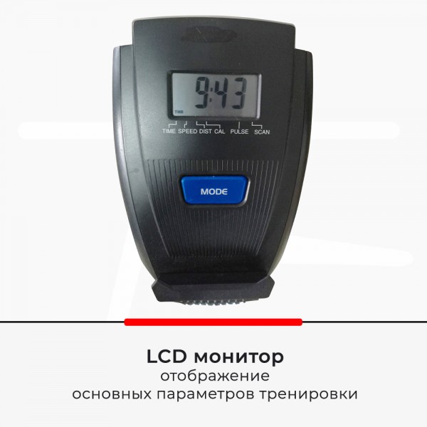Предусмотрено 8 уровней сложности, переключение происходит на стойке модели. Руль оснащен двумя датчиками контроля пульса, для более точных показаний можно купить и подключить кардиопояс.