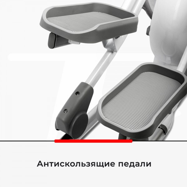Модель использует электромагнитное сопротивление на 24 уровня нагрузки. Комфортные нескользящие педали с бортиками обеспечат безопасность занятия. Встроены сенсоры для проверки пульса. Предусмотрена подставка для планшета или смартфона.