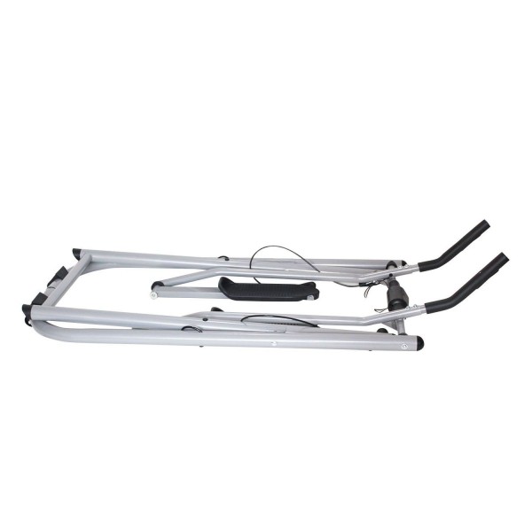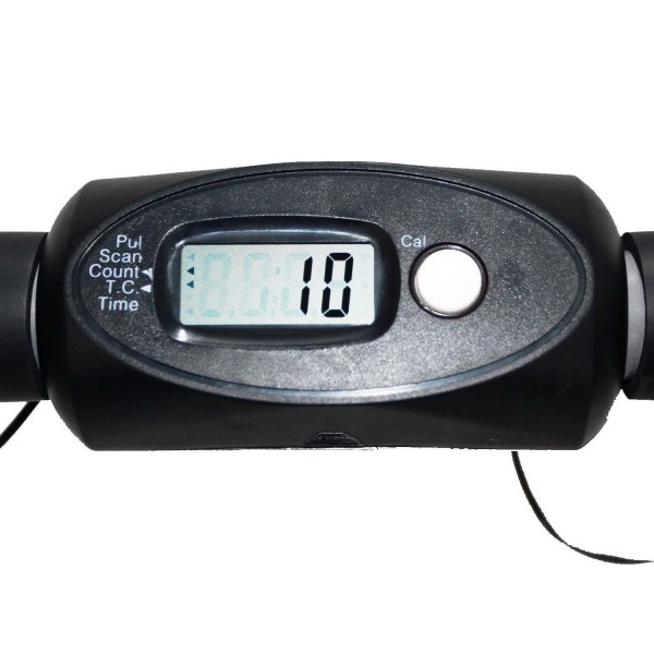 Модель выполнена на стальном каркасе с роликами для перемещения. Есть сенсоры для проверки пульса. Тренажер легко складывается и занимает мало места при хранении.