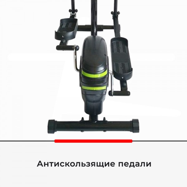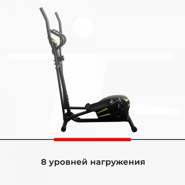 Конструкция позволяет вручную выбрать 8 вариантов нагрузки. Широкие педали комфортны и безопасны, длина шага тренажера 26 см. Предусмотрена проверка пульса через сенсорные датчики.
