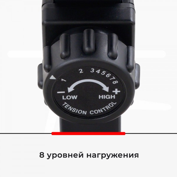 Наличие функциональности степпера позволяет воспроизвести подъем в гору. Есть 8 уровней сложности, на стойке модели расположен механический переключатель. Педали тренажера имеют бортик и не скользят, а на поручнях есть мягкие накладки для комфорта занятий. Датчики частоты пульса вмонтированы в дополнительный поручень.