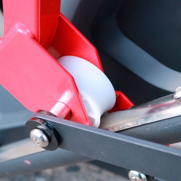 Конструкция включает подставки для планшета и бутылки, есть ролики и компенсаторы неровности.