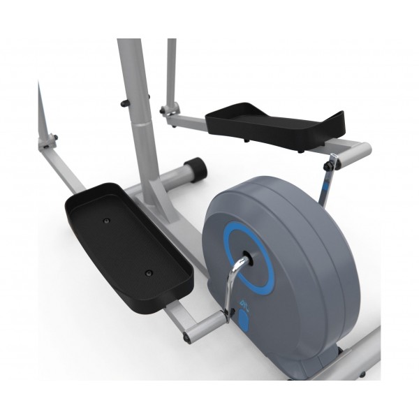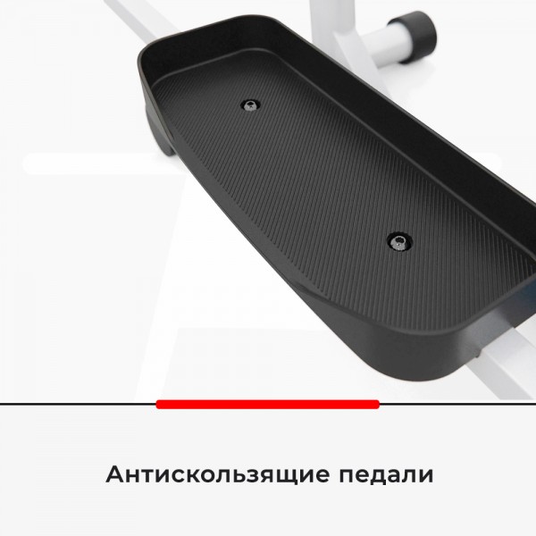 Тренажер обеспечивает 8 вариантов нагрузки с ручным переключением. Комфортные педали с нескользящей поверхностью установлены на расстоянии 26,5 см. Длина шага у данной конструкции составляет 28 см. Есть возможность проверить работу сердца, прикоснувшись к датчикам проверки пульса на поручнях.