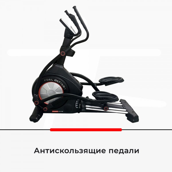 Надежные комплектующие и мощная рама гарантируют безопасность конструкции. Электронная настройка нагрузки имеет16 уровней. Установлены удобные широкие педали, а длина шага в 51 см будет комфортна пользователям высокого роста. Есть контроль пульса встроенными датчиками.