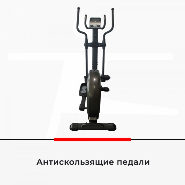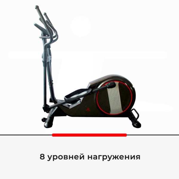 Модель предлагает ручную регулировку нагрузки - 8 уровней. Надежная рама из прочного стального профиля и широкие удобные педали гарантируют безопасность тренировки. Длина шага увеличена до 48 см, а Q-фактор равен 20 см. На поручнях расположены встроенные датчики, которые считывают показания пульса.