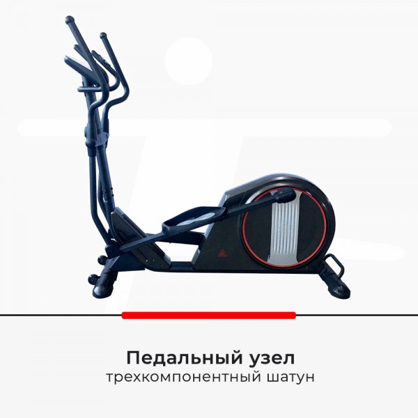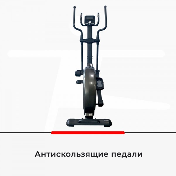 Конструкция включает электронное изменение нагрузки - 16 уровней. Используется прочная рама и широкие удобные педали с антискользящей поверхностью. Длина шага 48 см, а Q-фактор равен 20 см. Частоту пульса можно проверить, коснувшись встроенных сенсоров.
