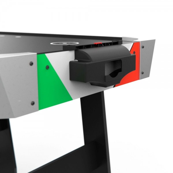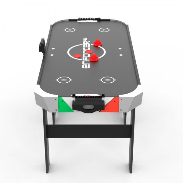 DFC ENFORCER - складной игровой стол для аэрохоккея. Модель работает от электросети. Комплектуется электронным приспособлением для ведения счета игры, двумя битами и двумя шайбами.