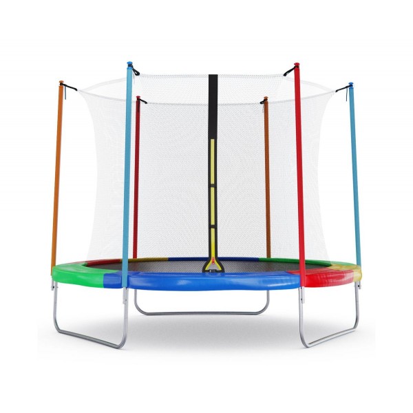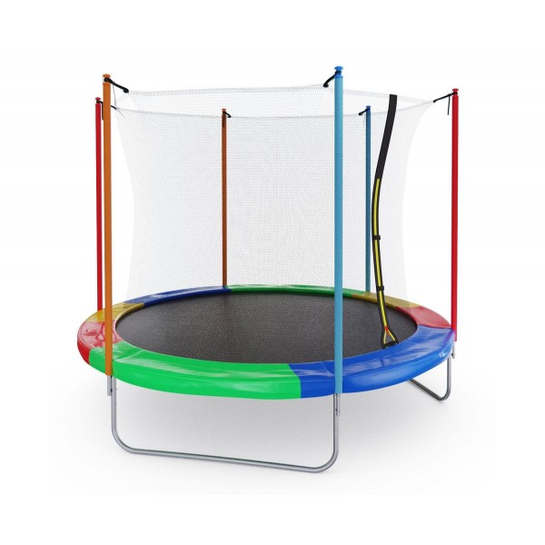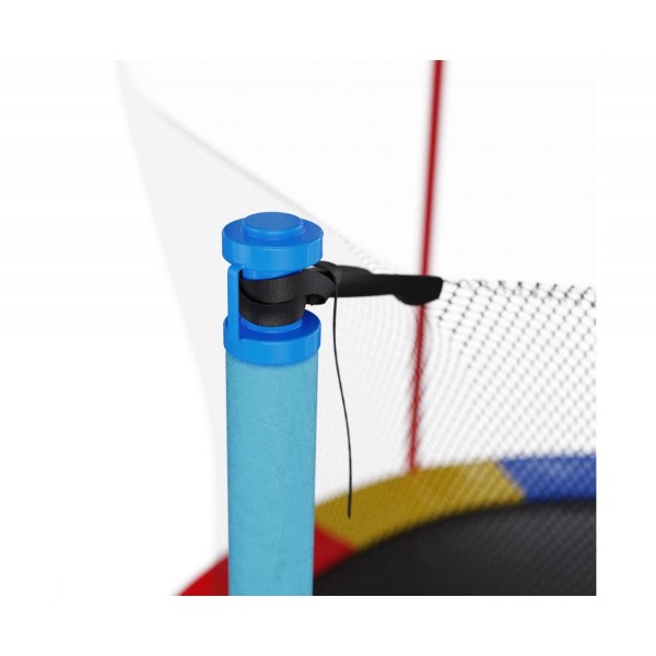 Конструкция батута основана на прочном стальном каркасе и пружинном блоке, сверху которого расположен защитный мат. Ножки батута обеспечивают стабильность и устойчивость изделия. Высота сети составляет 170 см, а вход закрывается на удобную застежку-молнию.