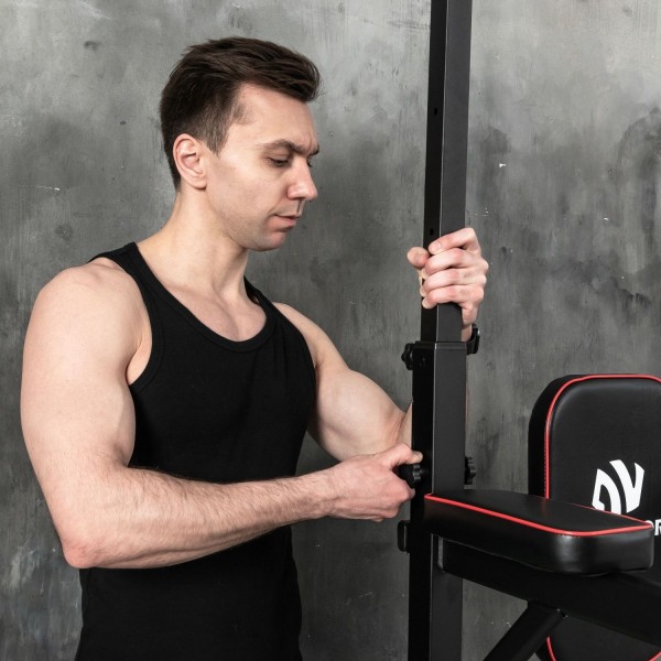 Конструкция включает усиленные опорные элементы и двойное основание для большей устойчивости тренажера. Есть 5 уровней высоты (181-226 см). Удобная мягкая подушка для спины и упоры для локтей обеспечат комфорт занятия.