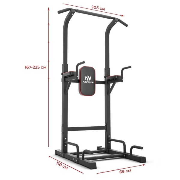 DFC G-ADVENOR – стойка тренировок спортсменов ростом 178-218,5 см и весом до 135 кг. Модель позволяет выполнять большой спектр упражнений - подтягивания и отжимания, вертикальный подъем колена и др.