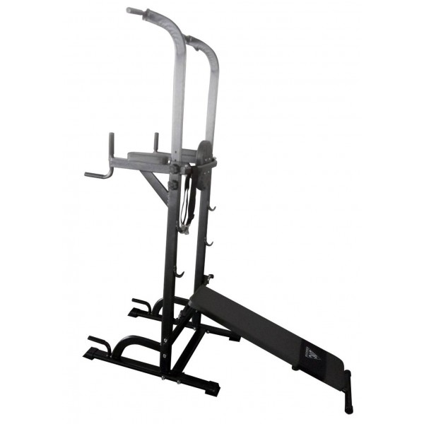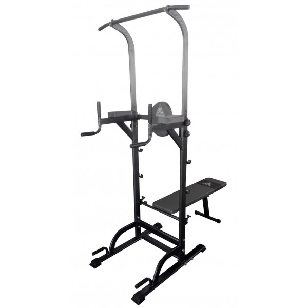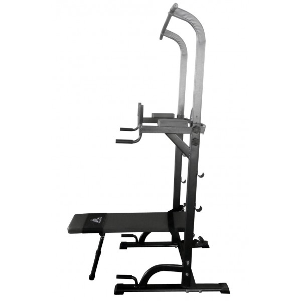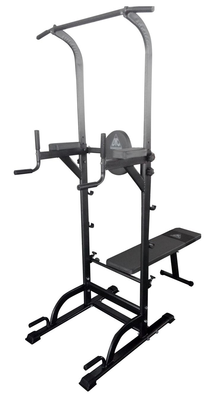 DFC POWER TOWER G005 комплектуется прямой скамьей, которую можно устанавливать под разными углами. Также предусмотрены крепления для тренировки со штангой. Стойка включает турник и брусья, можно качать пресс.