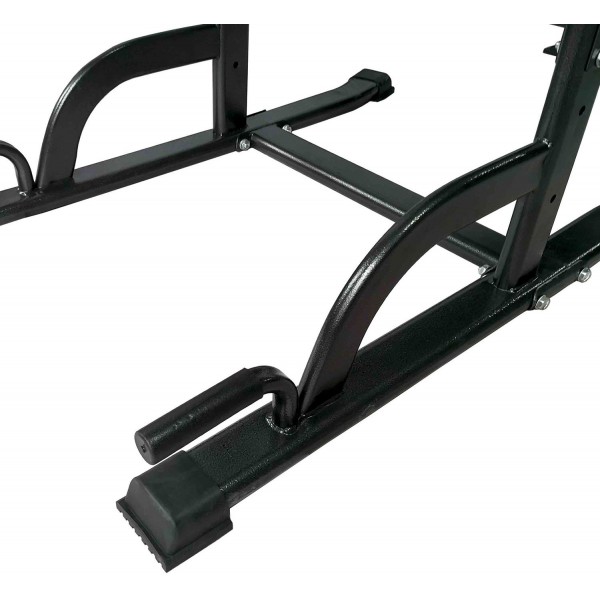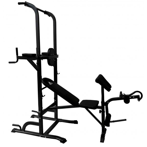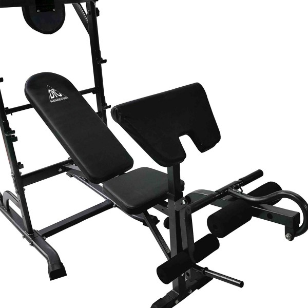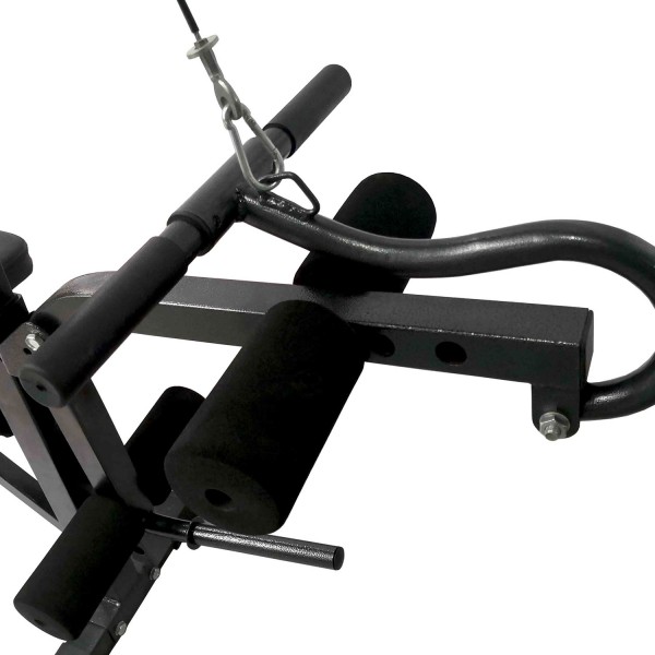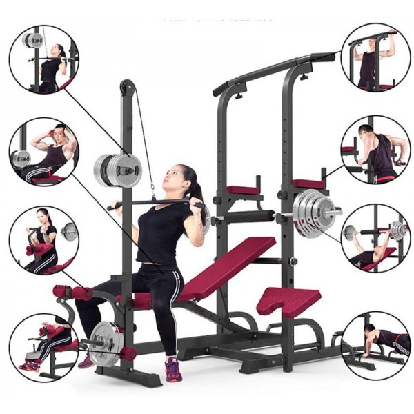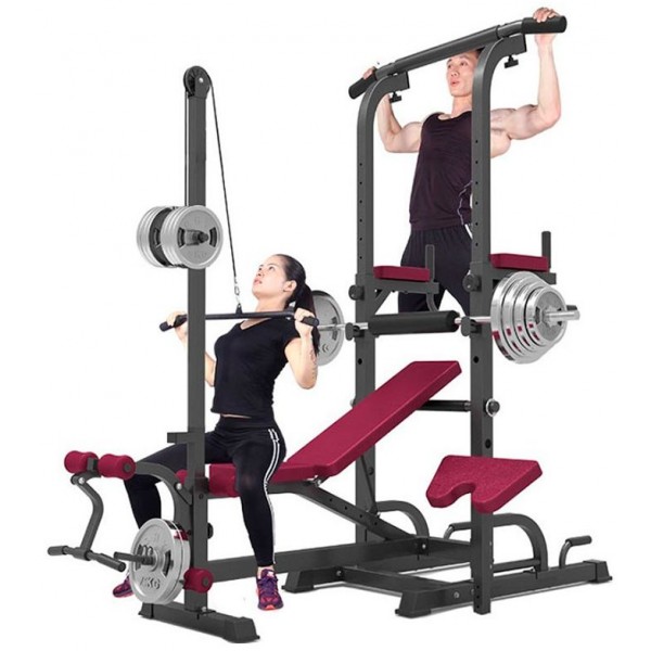DFC G010 – спортивный комплект для полноценных домашних тренировок. Тренажер сочетает турник с брусьями, тягу сверху и парту для бицепса, а также возможность жима ногами. Дополнительно можно установить прямой гриф и штангу, весовые диски 31 мм.