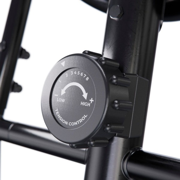В конструкции установлен маховик с инерционной массой 14 кг. Регулировка нагрузки выполняется вручную, на выбор есть 8 вариантов сложности. Педальный узел поддерживает вращение в обе стороны. Проверить работу сердца можно через датчики на поручнях.