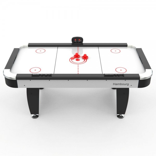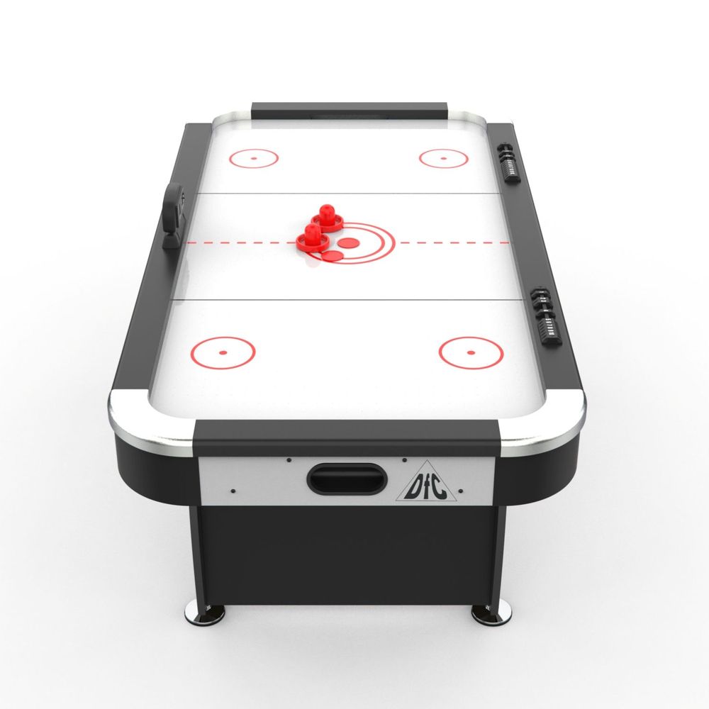 DFC HAMBOURG - игровой стол для аэрохоккея. Модель работает от электросети. Комплектуется электронным приспособлением для ведения счета игры, механическими счетчиками по бокам поля, двумя битами и двумя шайбами. Толщина поля 3 мм.