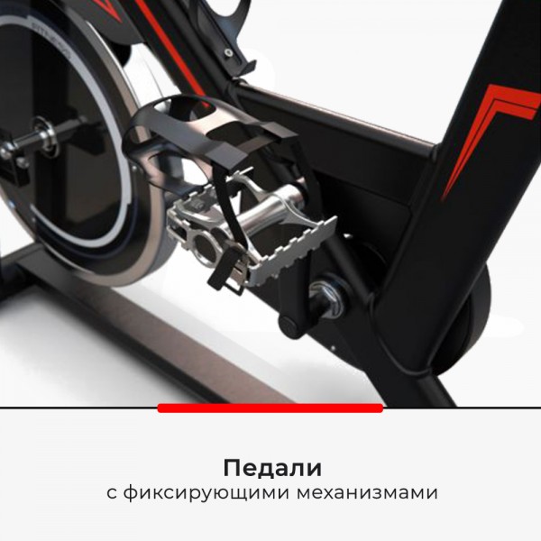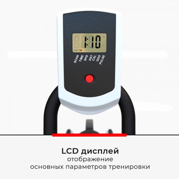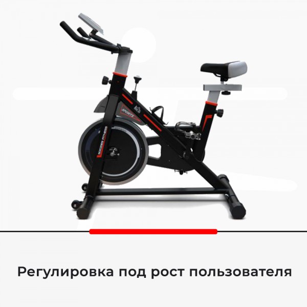 Тренажер оснащен маховиком с реальным весом 8 кг (инерционный - 17 кг). Можно настроить 7 вариантов высоты руля, и по семь позиций седла в вертикальной и горизонтальной плоскости (шаг 2,5 см). Изменение нагрузки происходит механически, вращением специальной ручки.