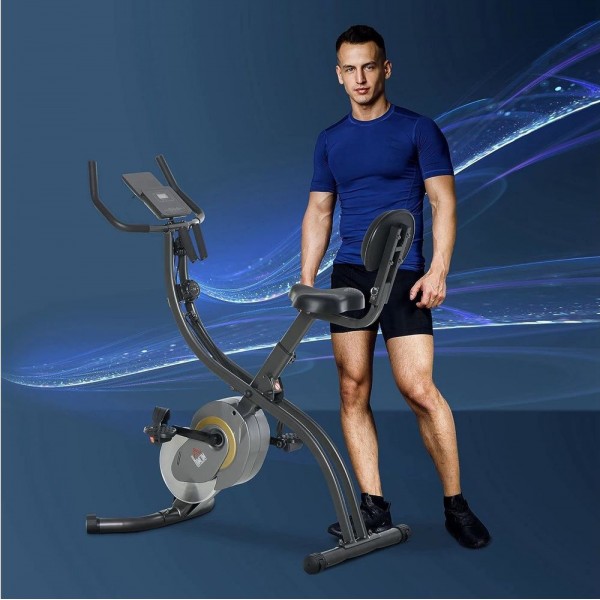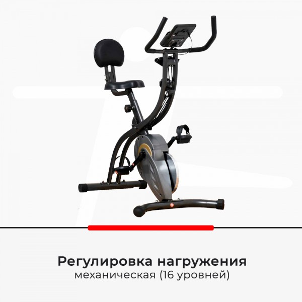 16 уровней механической регулировки системы магнитного нагружения позволяют тренировать свой организм для достижения оптимальных результатов. Настройки тренажера дают возможность установить необходимую высоту сиденья (5 уровней) и отрегулировать ремни на педалях. Тренажер имеет складную конструкцию, что позволяет экономить занимаемую площадь, а также компенсаторы неровности пола и транспортировочные ролики. Эргономика сиденья позволяет получить удовольствие от тренировки.