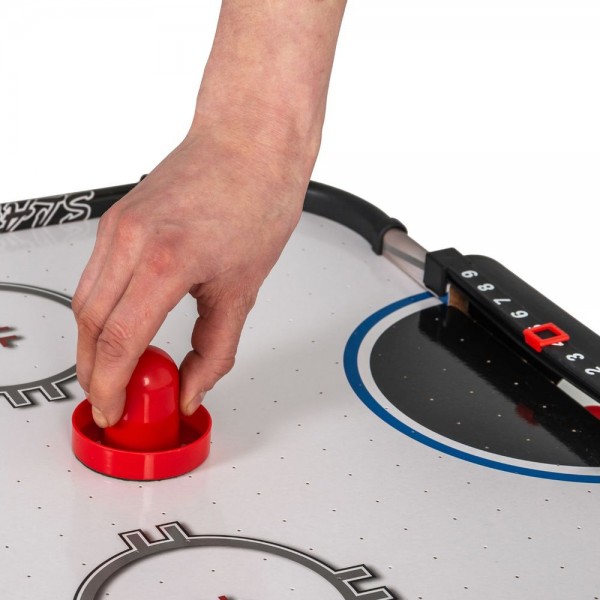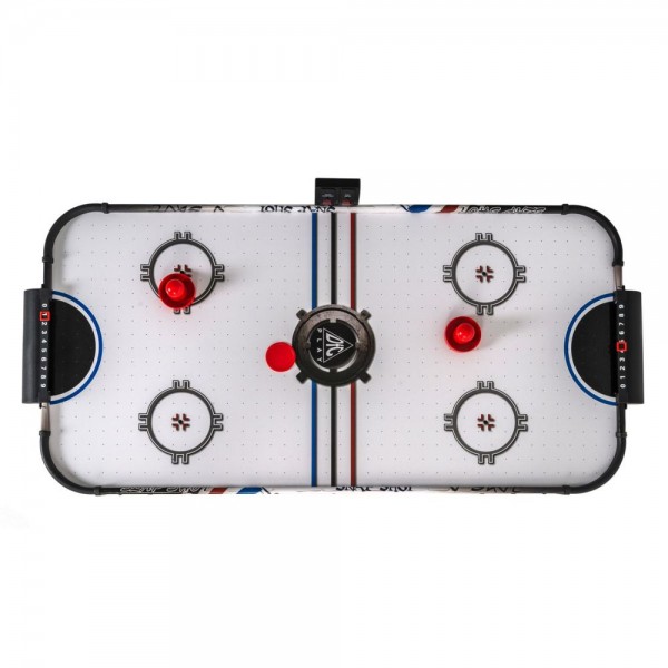 DFC MINI - настольный игровой стол для аэрохоккея. Модель работает от электросети. Комплектуется электронным приспособлением для ведения счета игры, а также дополнительными механическими счетчиками для каждого игрока, двумя битами и двумя шайбами. Толщина игрового поля 3 мм.