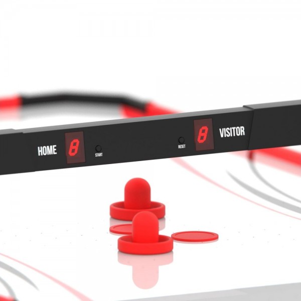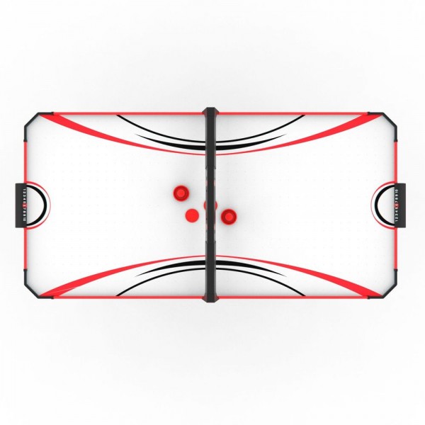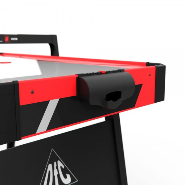 DFC KOMETA - игровой стол для аэрохоккея. Модель работает от электросети. Комплектуется электронным приспособлением для ведения счета игры (на батарейках), механическими счетчиками по бокам поля, двумя битами и двумя шайбами. Толщина поля 3 мм.
