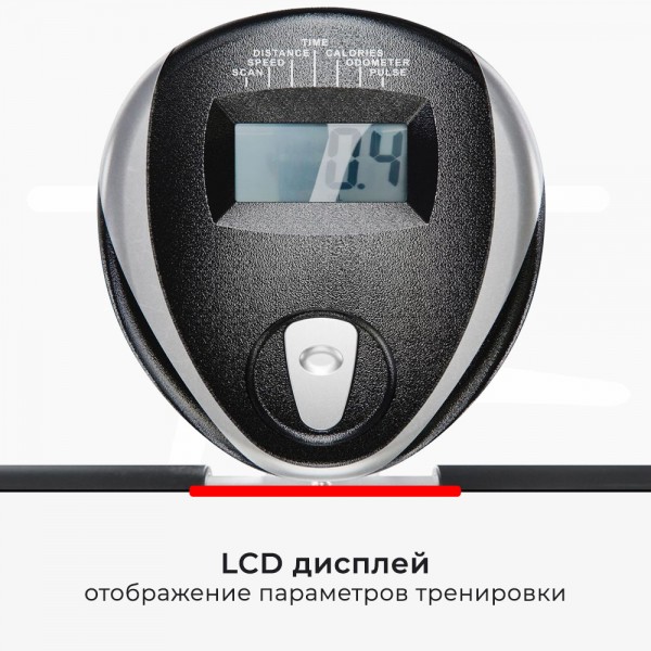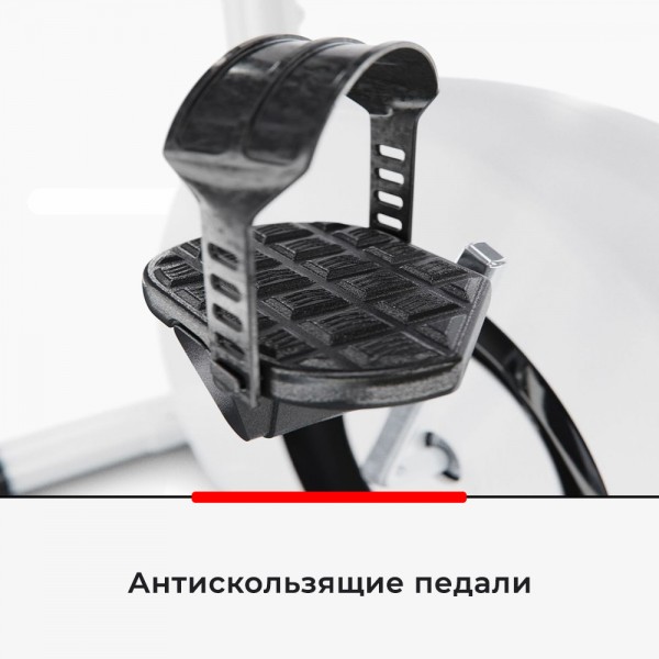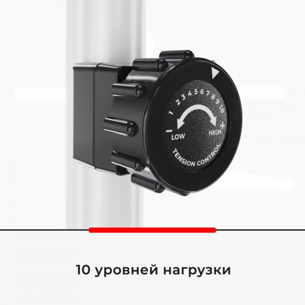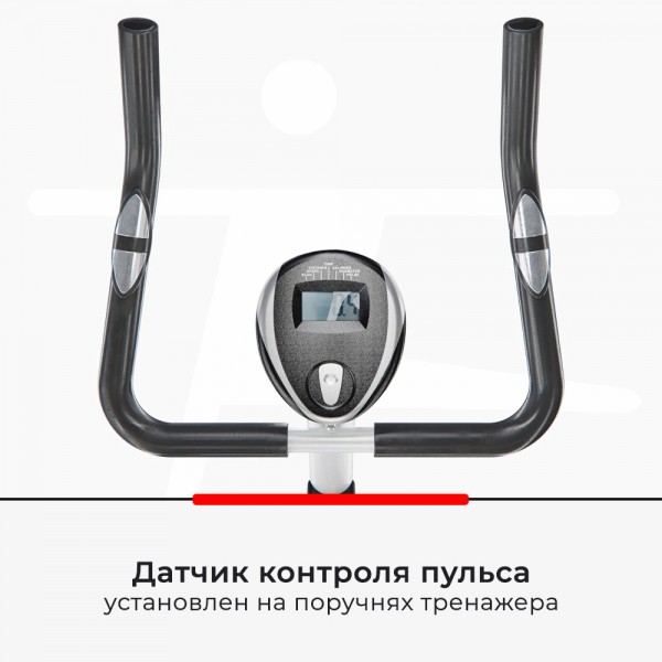 Маховик с реальным весом 4 кг (инерционный 7 кг) создает равномерную нагрузку, которую можно установить вручную на один из 8 уровней. Седло настраивается по высоте - 7 положений, 75-93 см от пола. Тренажер имеет датчики для проверки работы сердца.
