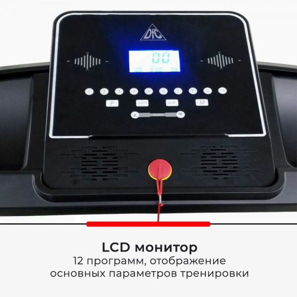 DFC LAVITA T350 – электрическая беговая дорожка для дома с увеличенной скоростью и основными программными режимами. Ограничение веса составляет 110 кг.