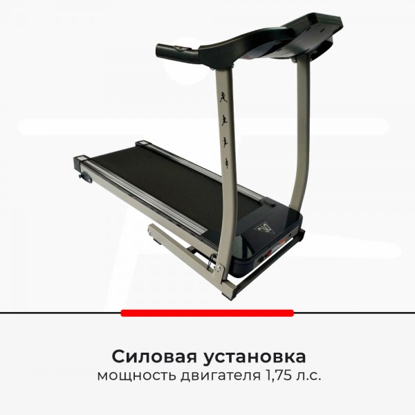 Конструкция использует двигатель мощностью 1,75 л. с., а предел скорости составляет 14 км/ч. Механически можно изменить наклон полотна, добавив или уменьшив нагрузку на тренировке. Предусмотрен контроль пульса на поручне, возможно подключение кардиопояса (не комплектуется). Модель легко сложить.