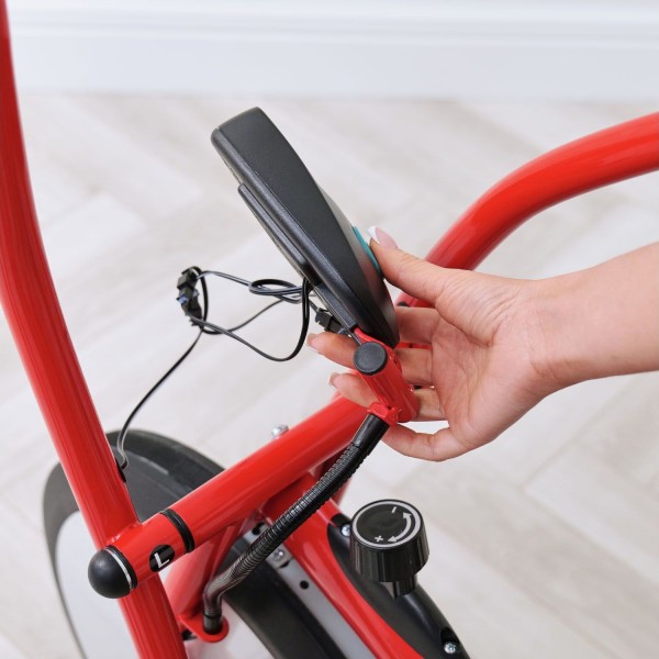 Конструкция позволяет настроить высоту седла (10 вариантов) и подобрать положение седла к поручням (2 уровня). Закрепив специальные перекладины на руле и педалях (по инструкции), тренажер становится альтернативной эллипсоиду и позволяет тренировать также и руки. Сила нагрузки задается поворотом регулятора.