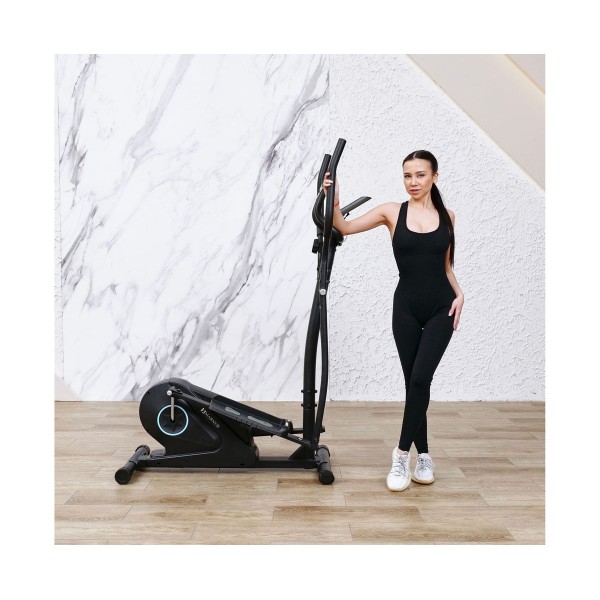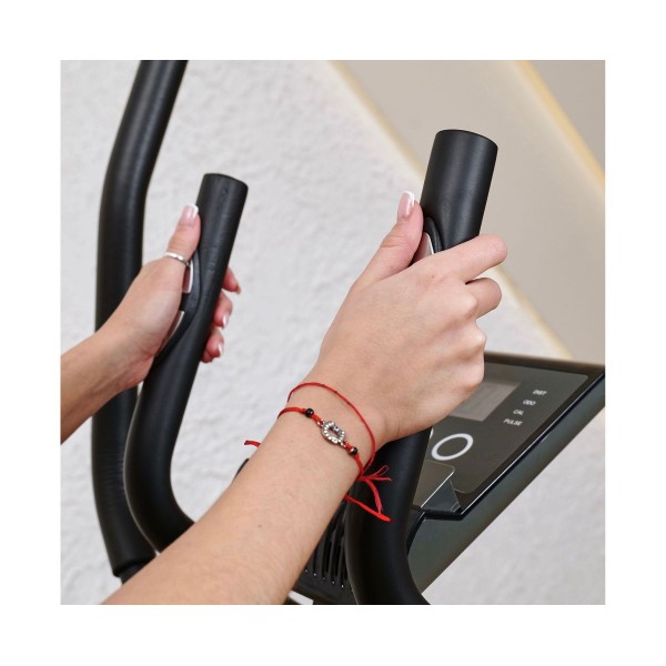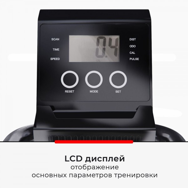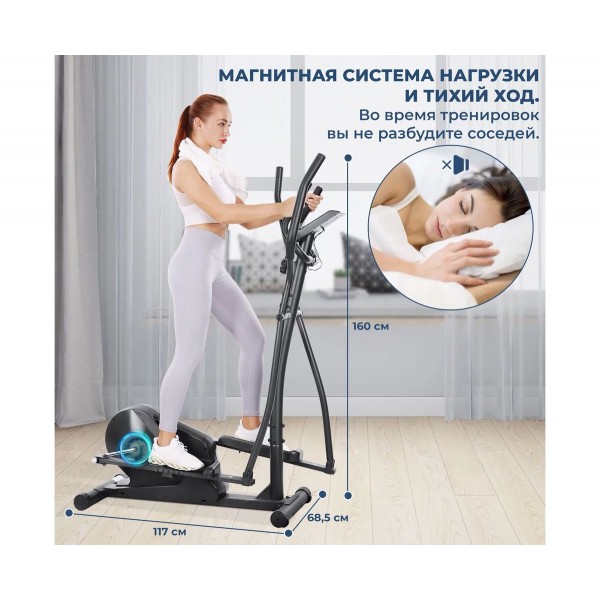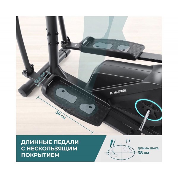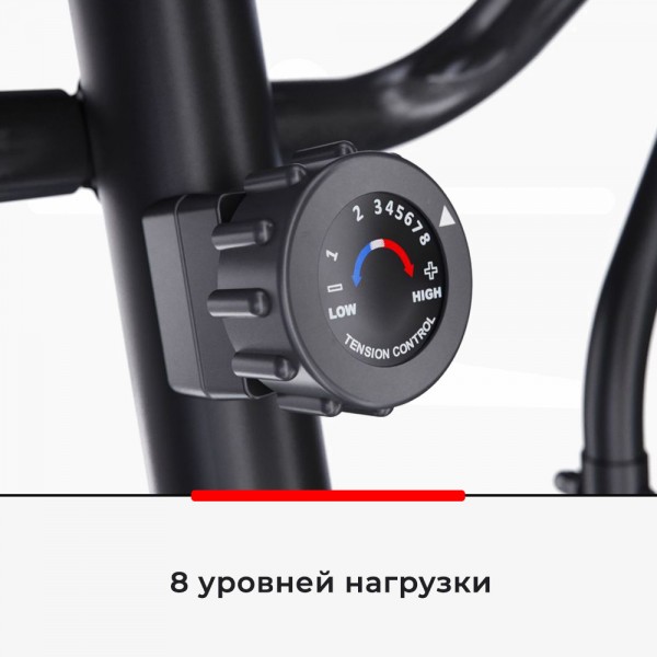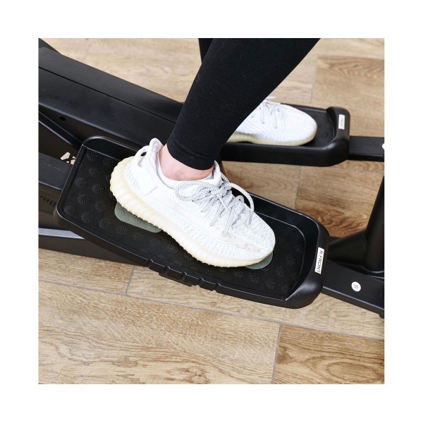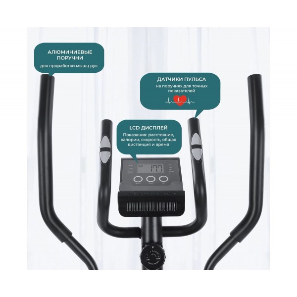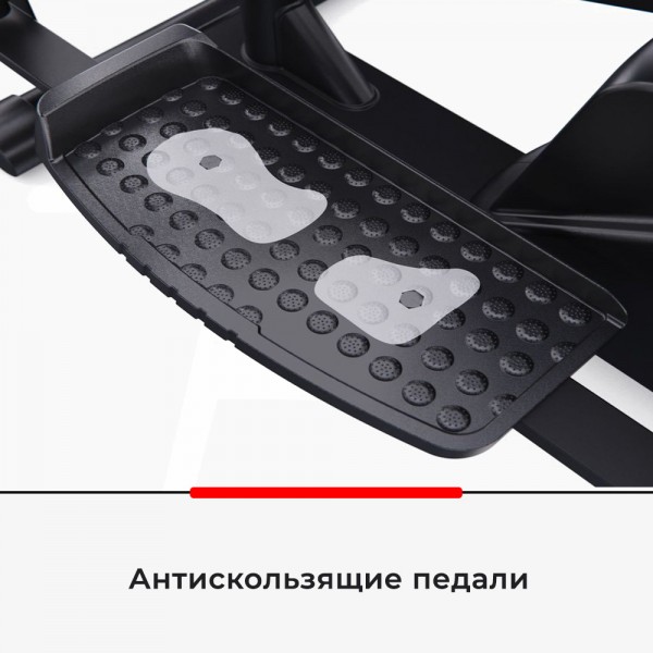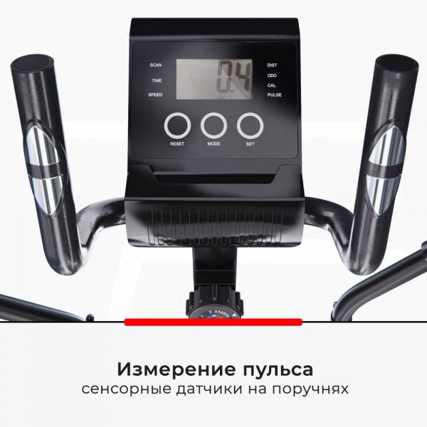 Тренажер предлагает выбор из 8 уровней нагрузки (с механическим переключением) и длину шага в 38 см. Педали имеют антискользящее покрытие и расположены с интервалом 20 см. Во время тренировки можно проверить работу пульса через встроенные сенсоры. Магнитный тип нагрузки не создает дополнительного шума.