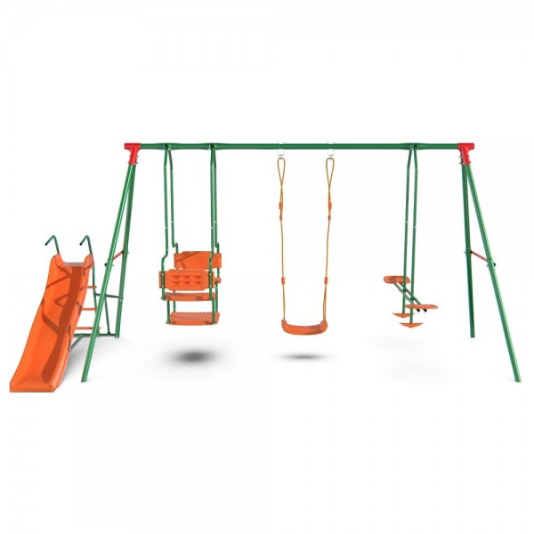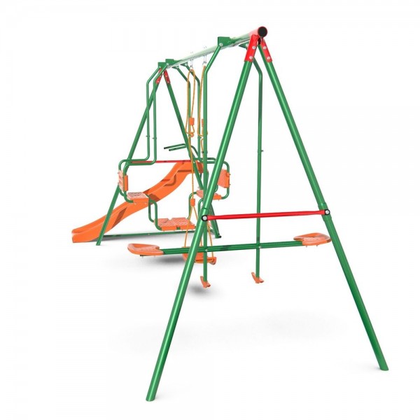 DFC MSGL-01 – игровой комплекс для детей 3-10 лет. В составе три варианта качелей и горка. Нагрузка до 210 кг (до 6 детей не тяжелее 35 кг).