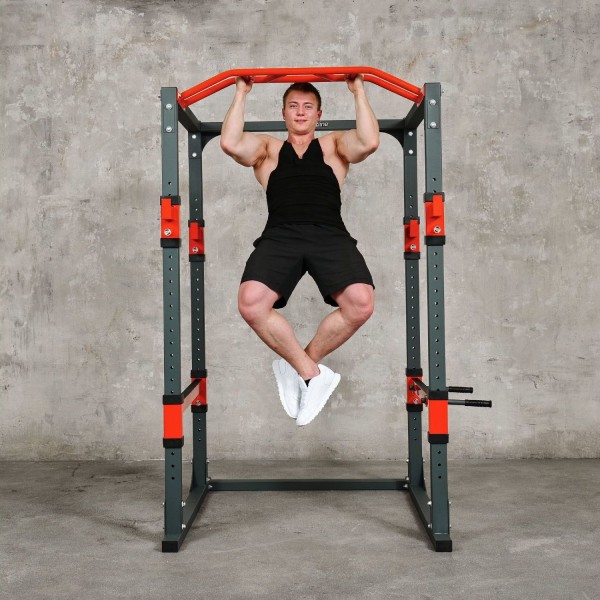 DFC INSPORTLINE PW100 – мощная силовая рама для работы со штангой, которая дополнительно оборудована турником и брусьями. Нагрузка до 300 кг. Может использоваться со скамьей (в комплект не входит).