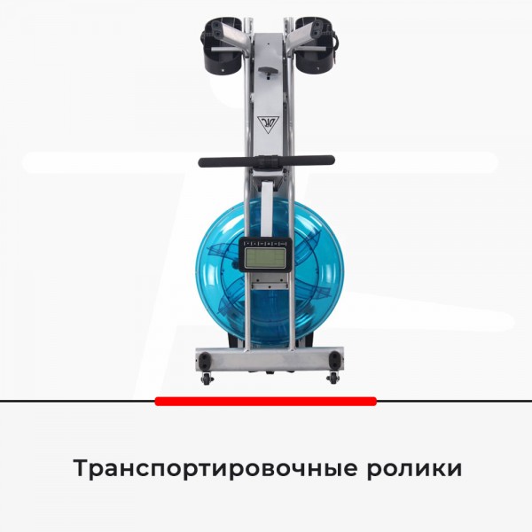 Тренажер использует гидравлическую систему нагрузки (6 уровней). Сила сопротивления движению будет зависеть от уровня воды в баке. Удобное сидение на роликах можно настроить для спортсменов разного роста. Длина трека составляет 105 см. Тренажер легко сложить с помощью маневренного колеса (вращение на 360 градусов).