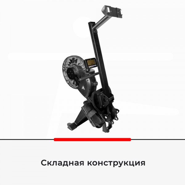 В основе конструкции лежит сочетание магнитного и воздушного сопротивления с ручной настройкой. Удобное сидение можно настроить для разного роста, также есть изменение длины педалей. Тренажер легко сложить, есть ролики для перемещения.