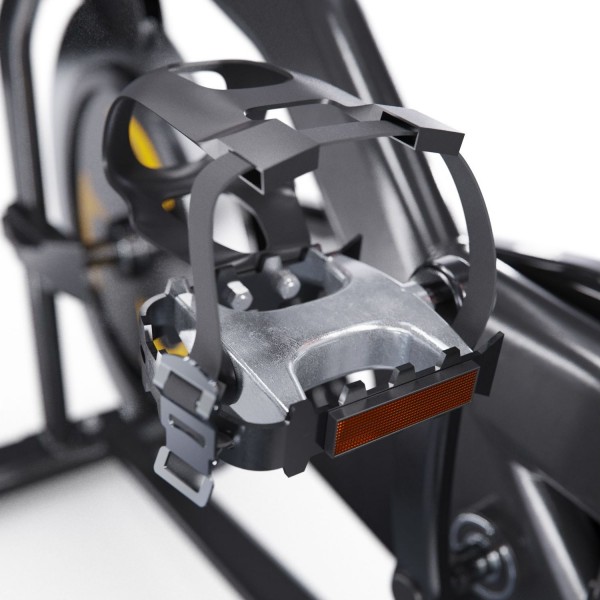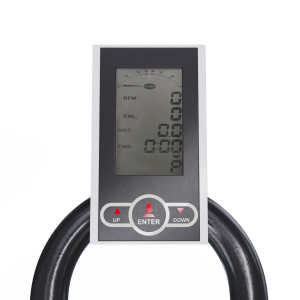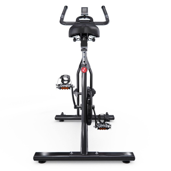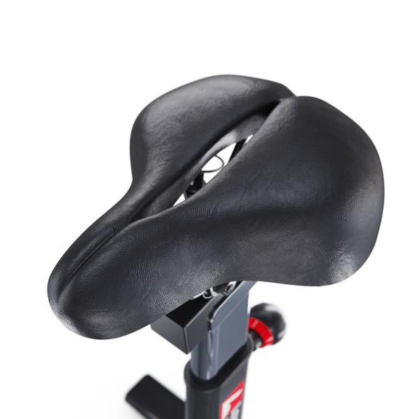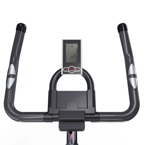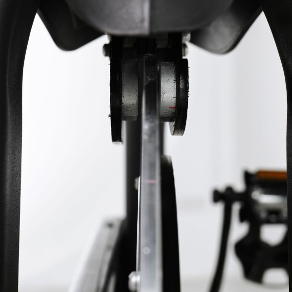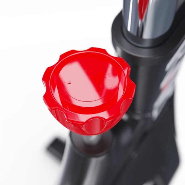 Система нагрузки тренажера комбинирует магнитное сопротивление и ременной привод, большой маховик с инерционным весом 19 кг создает реалистичное движение велосипеда. Тренажер работает тихо, нагрузка меняется бесступенчато. Комфортную посадку гарантирует настройка седла как по высоте, так и горизонтально (высота от пола 87-104 см), также есть регулировка руля. Есть проверка пульса благодаря встроенным датчикам.