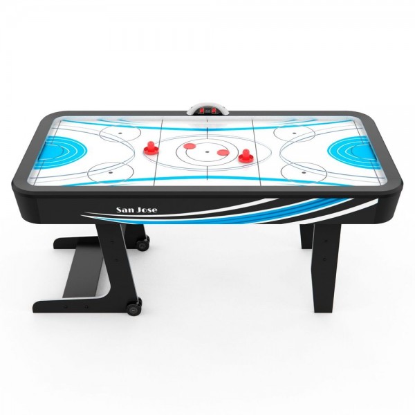 DFC San Jose - складной игровой стол для аэрохоккея. Модель работает от электросети, а для работы электронного табло понадобятся батарейки (приобретаются отдельно). Стол имеет звуковое сопровождение поединка. Комплектуется двумя битами и двумя шайбами.