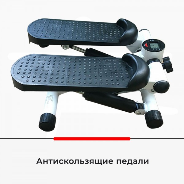Модель применяет для создания нагрузки гидроцилиндры. Педали степпера изготовлены с антискользящим покрытием. На ножках предусмотрена резиновая защита напольного покрытия от царапин.