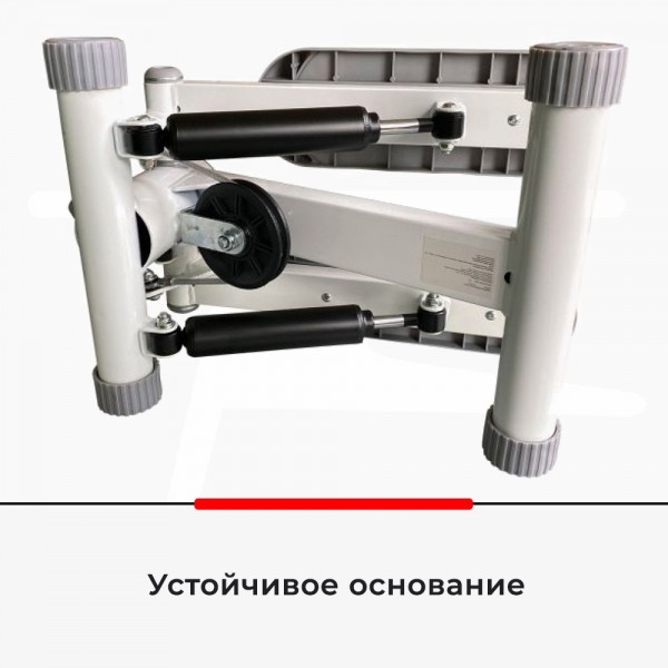 Конструкция тренажера включает гидроцилиндры для создания нагрузки и комфортные антискользящие педали.