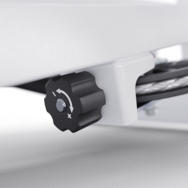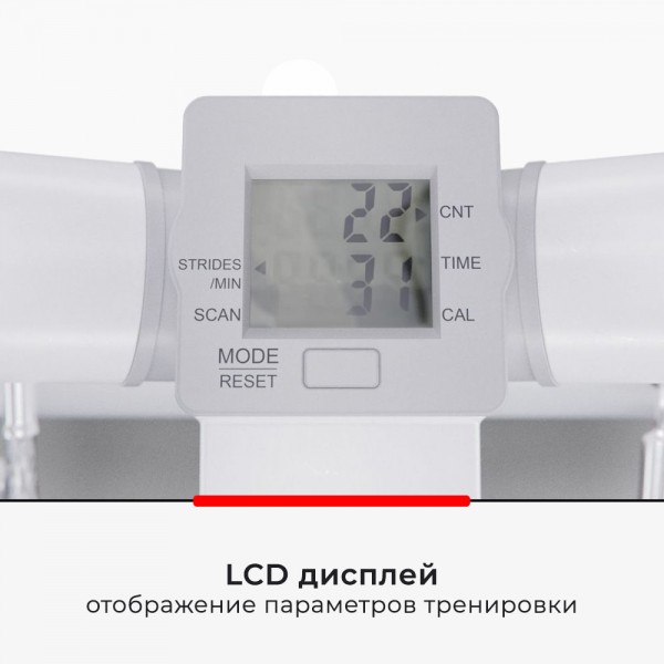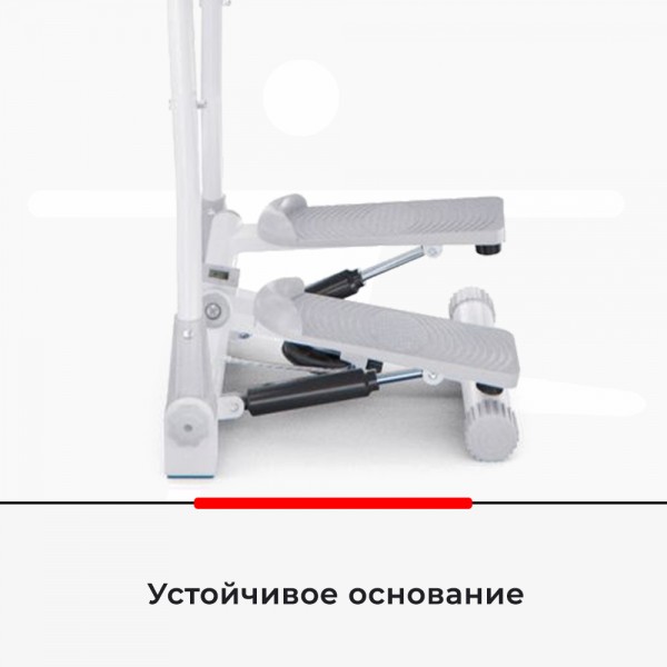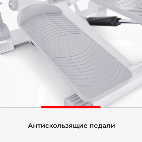 Нагрузка создается гидроцилиндрами, ход педалей взаимозависимый. Поворотом ручки можно усилить или уменьшить сопротивление. Поручни установлены на расстоянии 45,4 см.